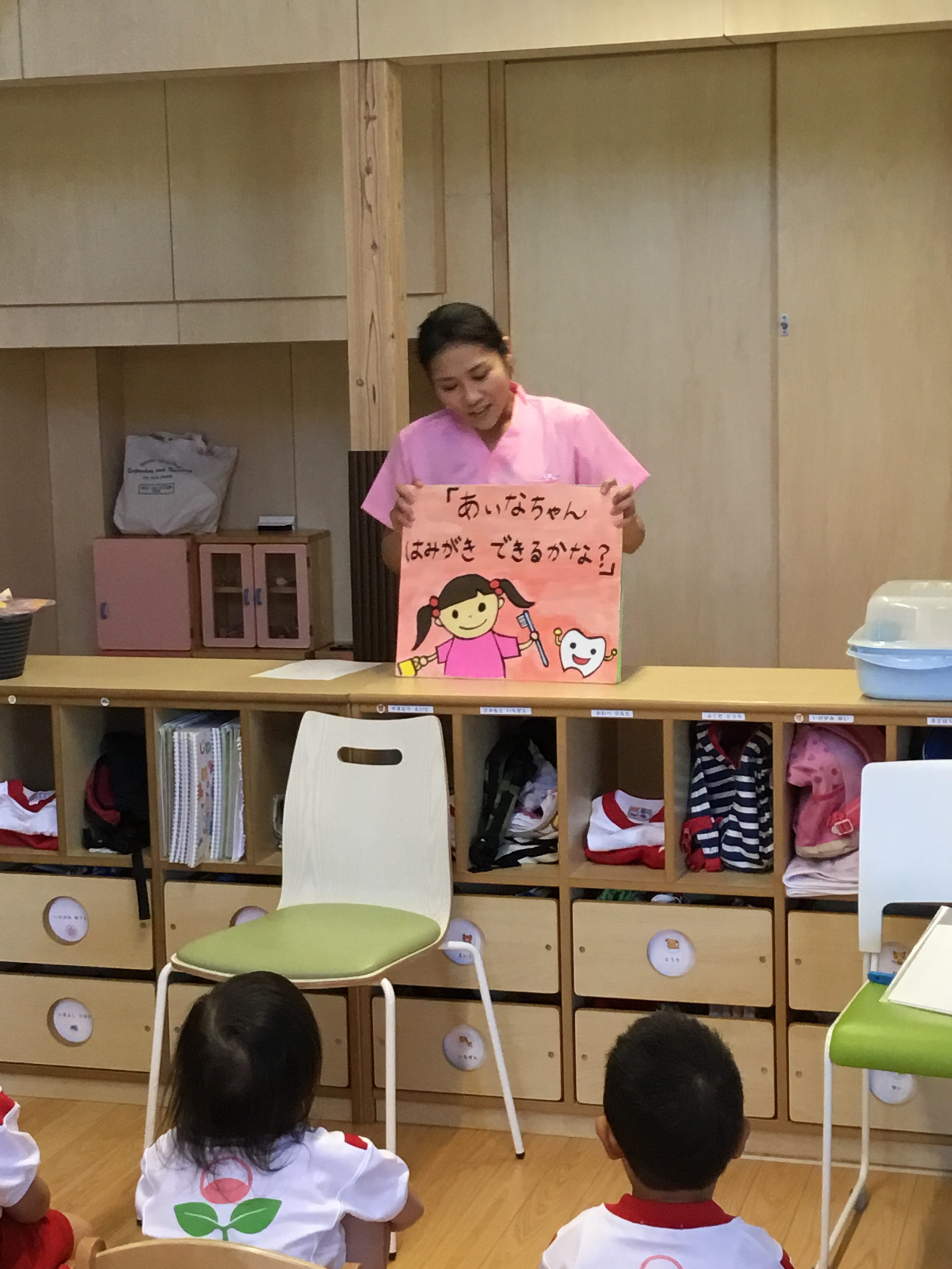 紙芝居の後は、園児も先生も全員参加のクイズを