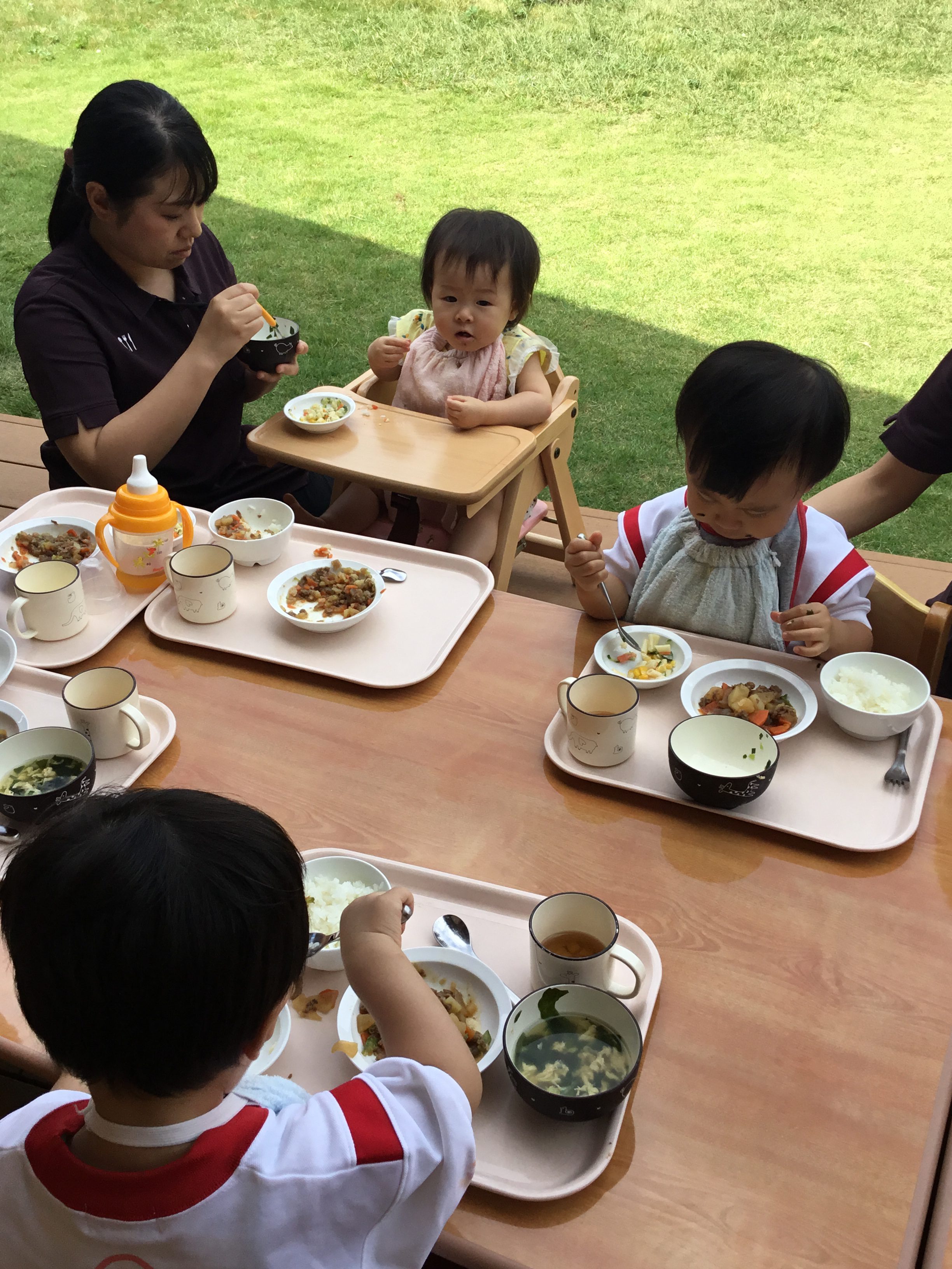 あいな保育園では、お天気がいい日に☀テラスでランチ♥をしています。