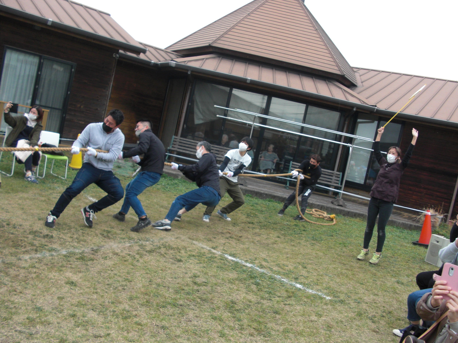 オープニングは~お父さんお母さんによる綱引き!!