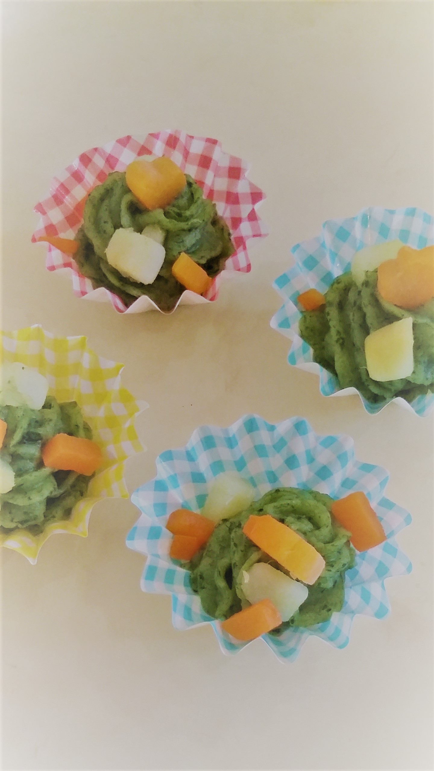 月齢の小さなお子様もたくさんイベントに参加してくれたので、離乳食でクリスマス気分を味わってほしいと考え、クリスマスツリーのような『サツマイモとほうれん草のツリー』をご用意させて頂きました。