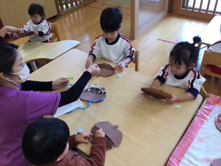 お誕生会のあとは、どんぐりバッグをみんなで作りました♡