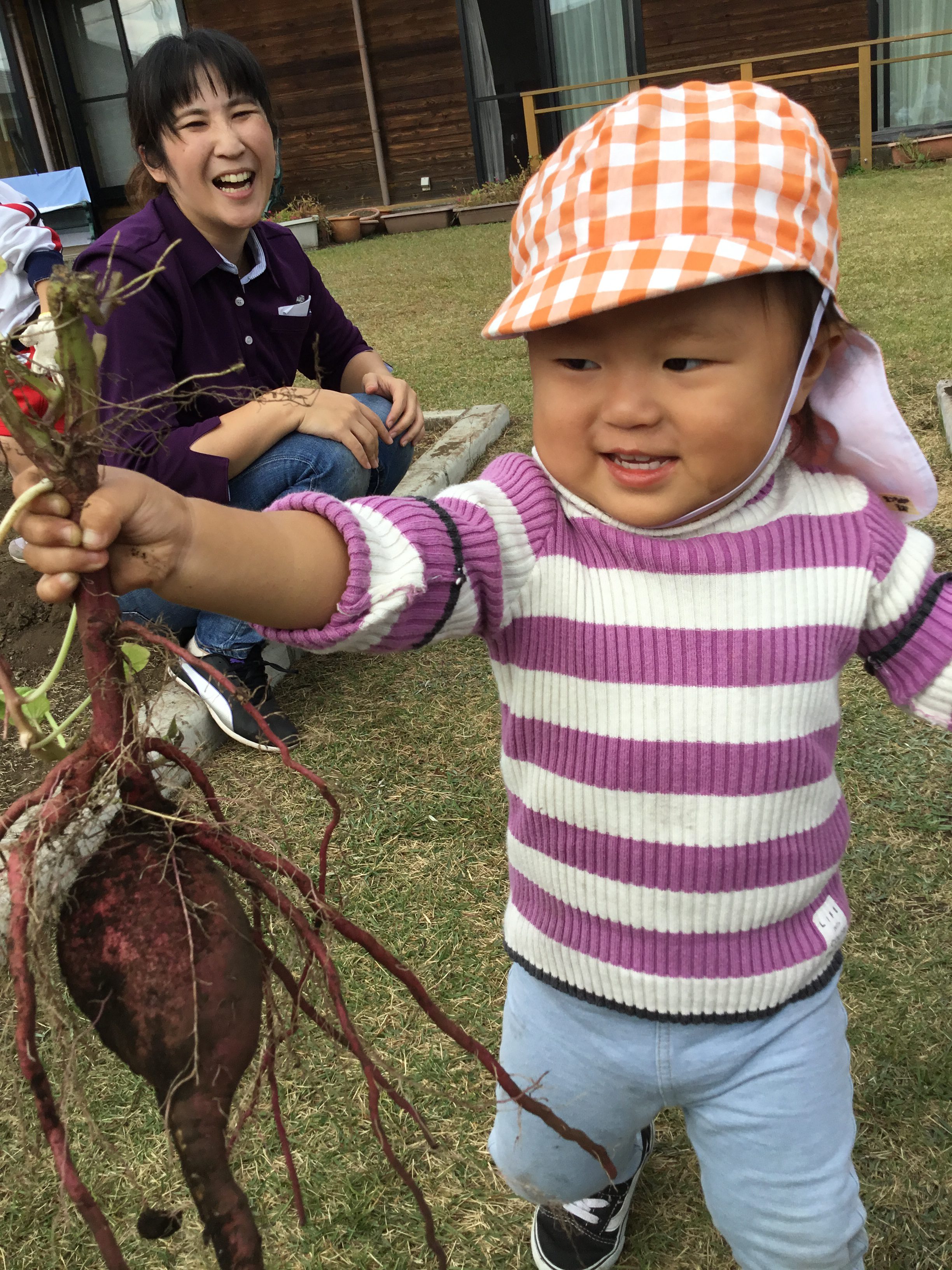 大きい芋掘れたよ!って、とびっきりの笑顔で見せにきてくれました。